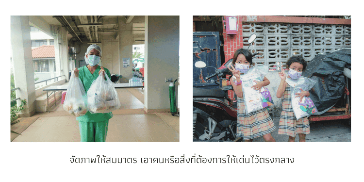 - และ ทางเทใจก็อยากได้รูปสวยๆ มาช่วยโปรโมตโครงการ เช่น ทำอัลบั้มเล่าเรื่องเเบบอัพเดต โครงการหมวกป้องกันเชื้อ